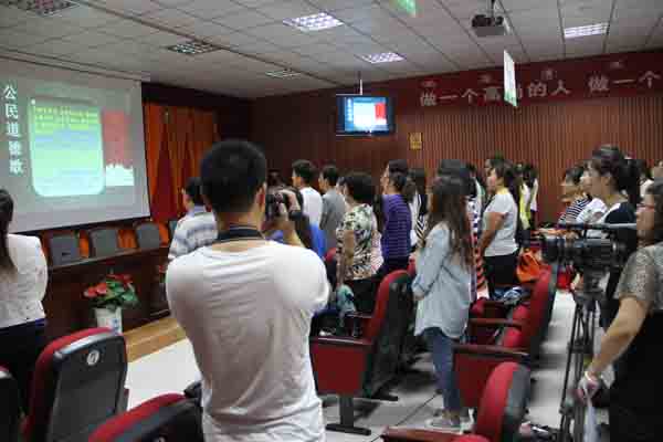 为便于更多单位建立道德讲堂,参与道德讲堂,乌审旗文明办将无活动阵地、人员不足20人的单位吸纳为成员单位,通过精心筹备,8月14日,乌审旗道德讲堂总堂首场开讲,总堂成员单位干部职工、各级文明单位代表、社区居民及文明办全体干部职工共约140人参加了活动。