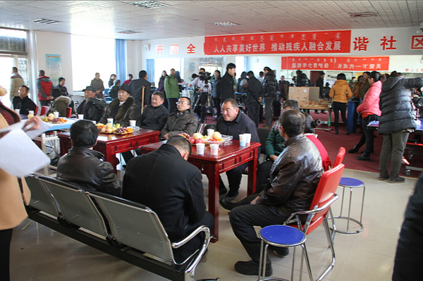 (嘎鲁图镇独贵龙社区“向残疾人送温暖、献爱心”座谈会现场)